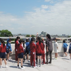 今年は大型連休の合間に授業日が2日間あります。良い天気の中、子供たちは元気に登校してきました。 3年生の社会科の学習では地域を学びます。まずは、学校の周りを調べます。今日は、屋上に登り、北の方には「駅やスーパーマーケットがある」、東の方には、「病院や学 ...