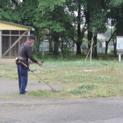 今日は、学校応援団の方に10名以上お集まりいただき、校地内の刈り払い機での除草やチェーンソーを使った木の伐採を行っていただきました。本校は、児童数の割に校地が広いので、大人の手が入るととても助かります。時折小雨の降る天候でしたが、すっかりきれいになりまし ...
