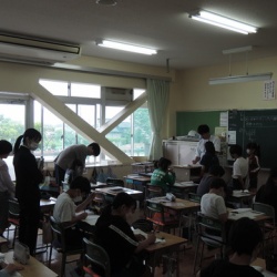 教育実習生が5年生の算数の授業を参観しています。実習生だけでなく、他の教員にも「授業のはじめだけ」「おわりだけ」などと参観を促しています。短時間でも授業を生で見ることにより、学級の雰囲気や教師の児童への声かけの仕方などを学ぶことができます。本校の教員の ...