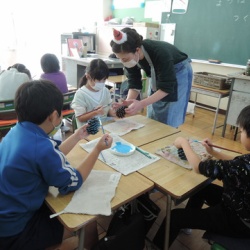 今日は、1年生が、地域のゲストティーチャーをお招きして、松ぼっくりのクリスマスツリーづくりに取り組みました。大きな松ぼっくりに、筆で白や赤、青、緑などの色を付け、ビーズなどを飾り付けました。とてもかわいらしい作品が出来上がりました。 ...