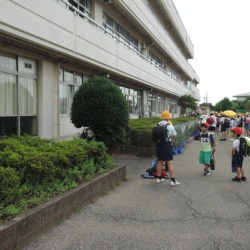 今日は、6年生と4年生が水泳指導に行きました。 今年度は、登校時刻を8:05から8:15までと変更しました。年度当初は守られていましたが、最近、登校時刻が早くなっている班が多くあります。今日もっとも早い子は、7時56分に到着していました。児童玄関を開ける8:05には、 ...
