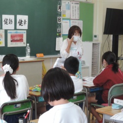 本校では、子供たちの情操を育むために、毎週月曜日の朝の活動の時間には、読書活動を行っています。その中で、読書ボランティアのポケットさんにお願いして、読み聞かせをしてもらっています。今日は、4年生の順番でした。初めに手遊びをしてから、外国のお話をしていた ...