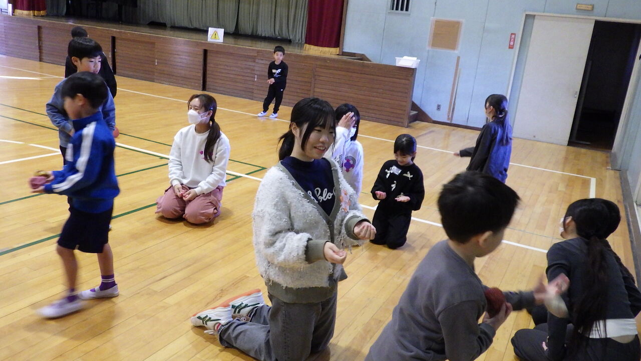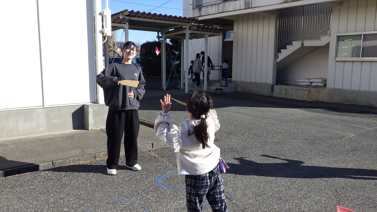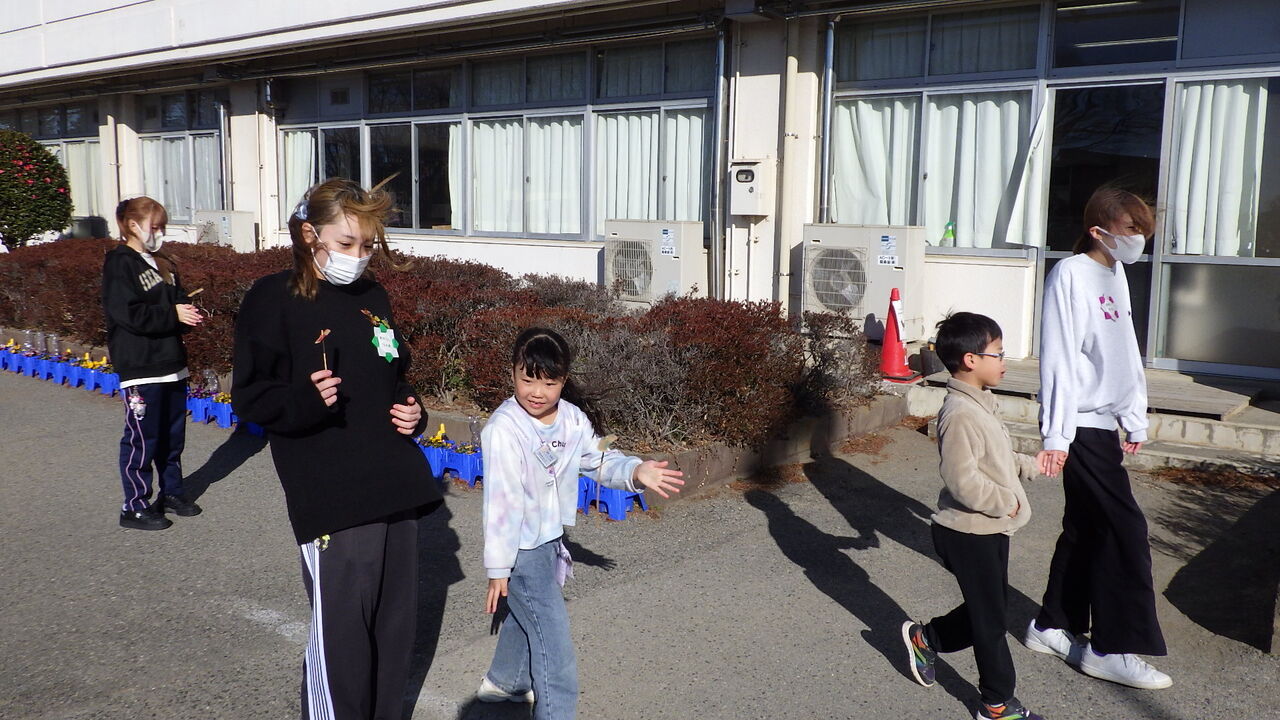 1年生・短大生との交流(1/14) 2026年01月14日 今日は、学校の隣にある埼玉純真短期大学の学生さんに来校いただき、1年生が昔遊びの交流会を開きました。1年生と学生さんとがペアになり、だるま落とし、お手玉、けん玉、コマ回し、竹馬、竹とんぼ、羽子板などを一緒に楽しみました。最後に、ダンスを披露しました。楽しく有意義なひとときになりました。ありがとうございました。※卒業式まであと46日。 < 前の記事次の記事 >