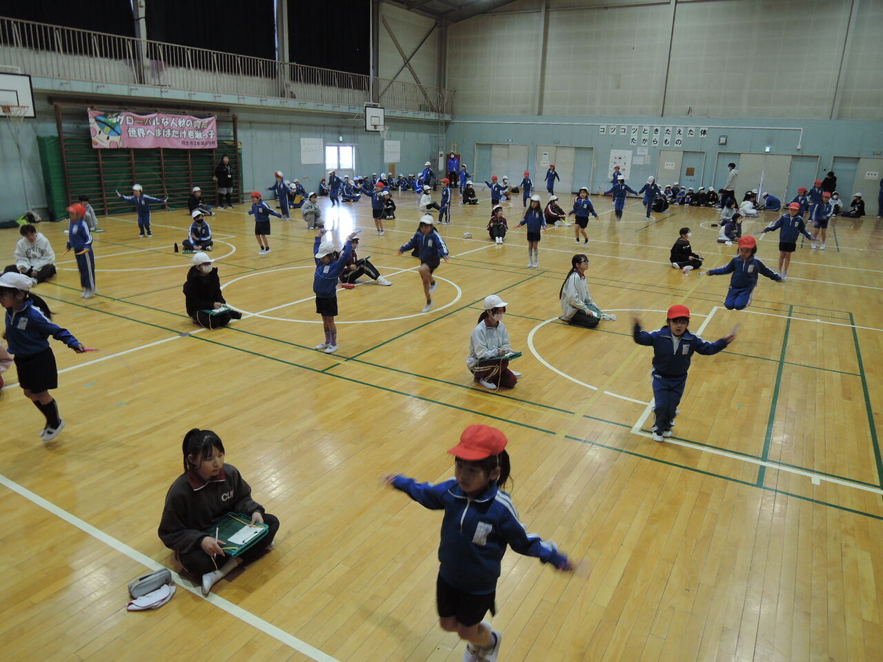 なわとび週間(1/21) 2026年01月21日 今週は、なわとび週間になっています。20日に低学年が記録会を実施しました。6年生が回数を数えに来てくれました。どうもありがとう。1年生も2年生もこれまで練習してきたことを存分に発揮し、頑張りました。 22日に高学年、23日に中学年で記録会を実施予定です。※卒業式まであと41日。 < 前の記事次の記事 >